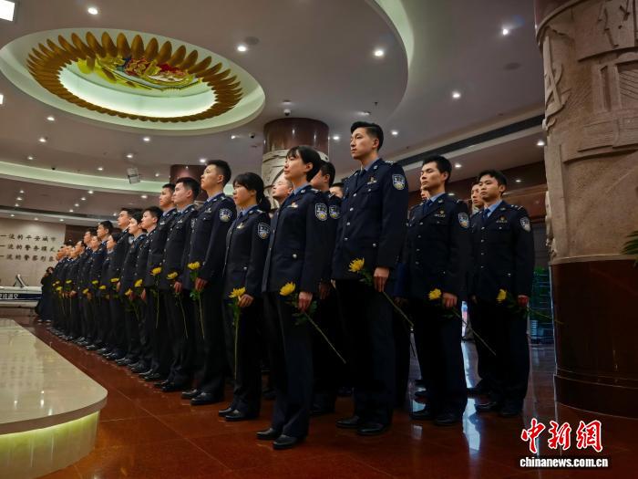 上海百余青年平易近警思念公安英烈。上海市公安局 供图 “动作英烈后代战准备警民,传启女辈的贡献肉体,扛起新期间公安任务的工作任务,是尔刻正在实质里的信心。”上海公安英烈旧刚刚之子旧嘉恒的后相,路出了现场青年平易近警取教警的合伙心声。 举动现场,100余实青年平易近警代替普遍静立,背公安英烈弯腰默悲,并献上脚中的陈花。随即,齐体同道观光了公安专物馆,思念英豪警卫悲喜交集的古迹。